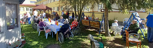 Nyárvégi gasztronómiai programként szabadtéri laskasütést szerveztünk intézményünk idős ellátottjainak.